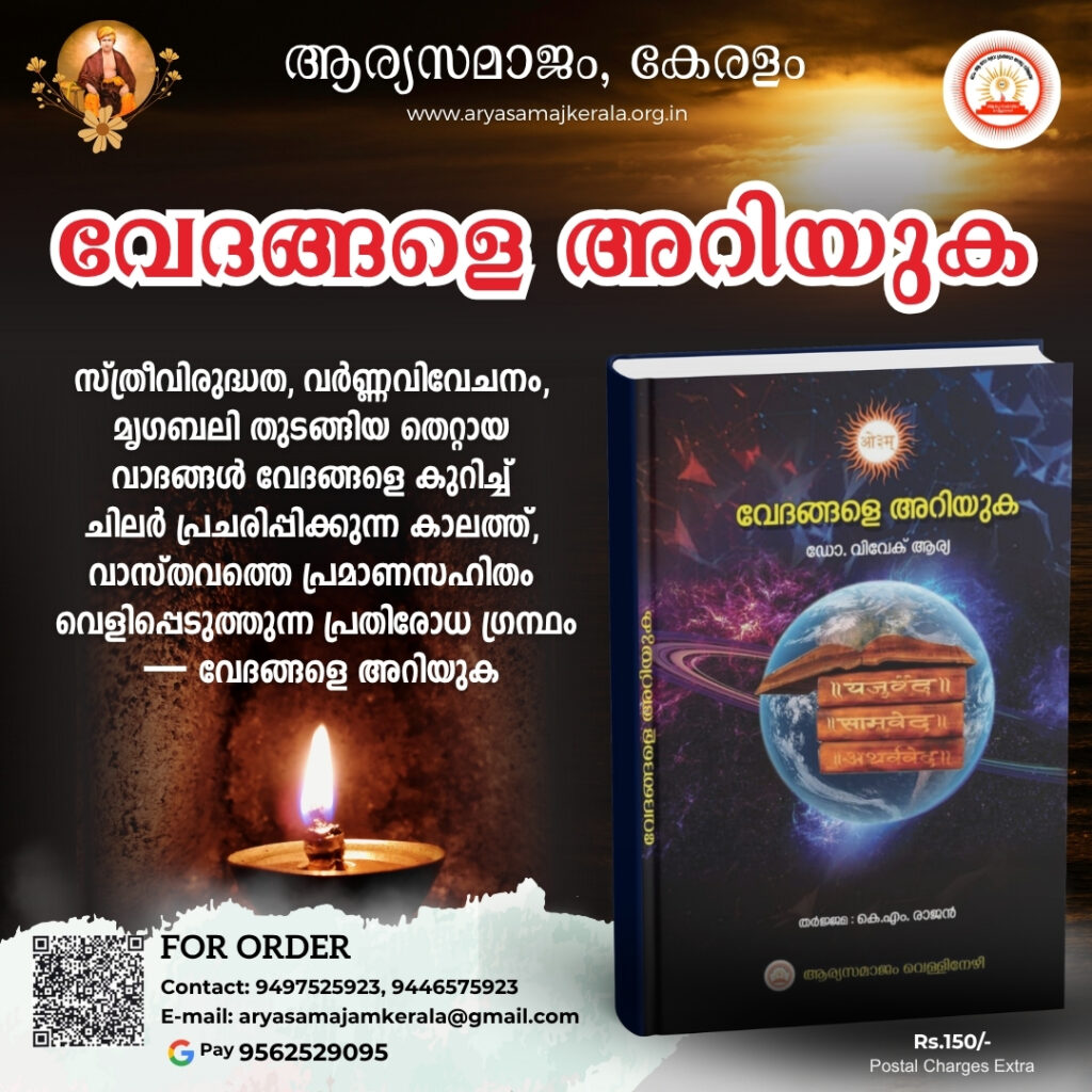 മേല്‍പറഞ്ഞ രീതിയിലുള്ള അപകീര്‍ത്തികള്‍ക്കും ദുഷ്പ്രചരണങ്ങള്‍ക്കും ചുട്ടമറുപടിയാണ് ശിശുരോഗവിദഗ്ധനും ധര്‍മ്മപ്രേമിയുമായ ഡോ. വിവേക് ആര്യയുടെ വേദോം കോ ജാനേ എന്ന ഹിന്ദി പുസ്തകം. ഈ പുസ്തകം മലയാളത്തില്‍ വേദങ്ങളെ അറിയുക എന്ന പേരില്‍ തര്‍ജ്ജമ ചെയ്തിരിക്കുന്നത് ആര്യപ്രചാരകനും കാറല്‍മണ്ണ വേദഗുരുകുലം അധിഷ്ഠാതാവുമായ ശ്രീ. കെ. എം. രാജന്‍ മീമാംസക് ആണ്. വെള്ളിനേഴി ആര്യസമാജം പ്രസിദ്ധീകരിച്ച ഈ പുസ്തകത്തിന്റെ വില 135/ രൂപയാണ് (തപാല്‍ ചെലവ് പുറമെ).